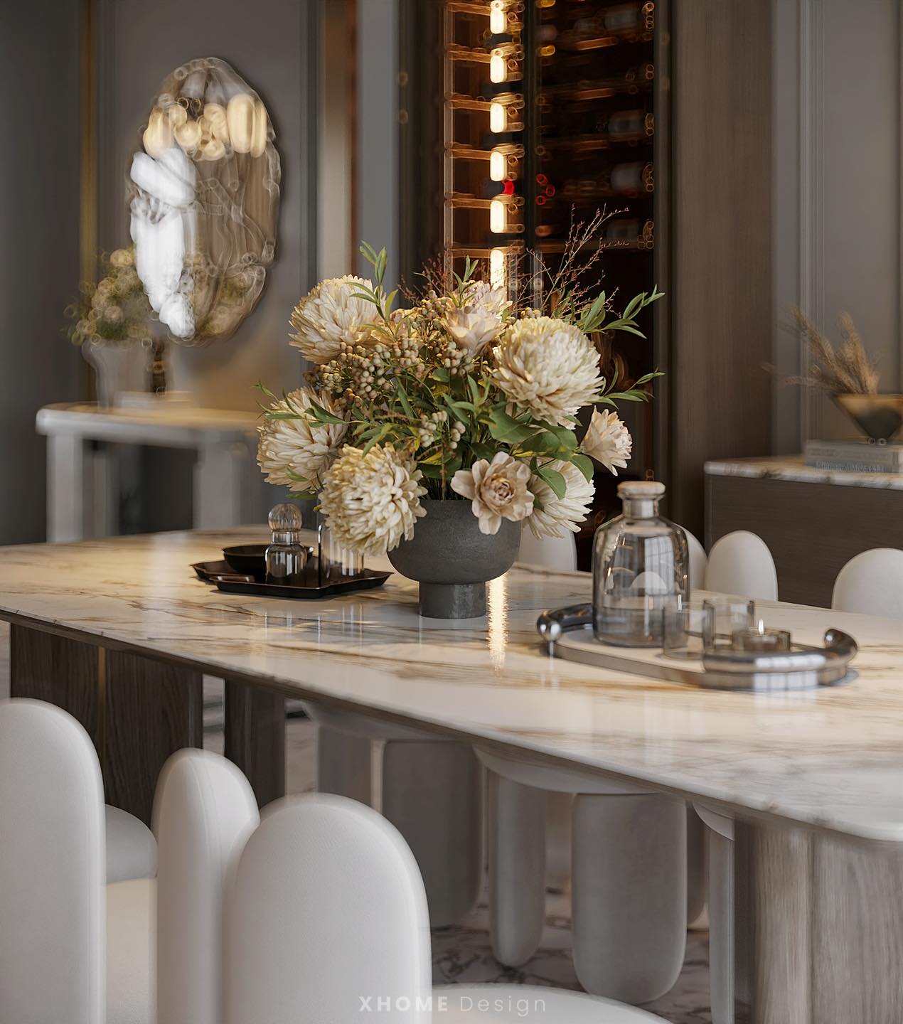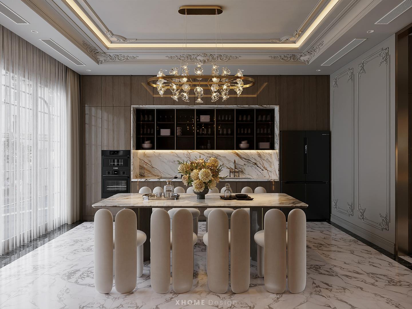 Vinhomes Cổ Loa Villa – Dự án thiết kế nội thất biệt thự tại Hà Nội do XHOME thực hiện. Không gian được kiến tạo theo phong cách tân cổ điển sang trọng (Neoclassical Luxury), mang đến vẻ đẹp tinh tế, đẳng cấp và đầy cuốn hút. Sự kết hợp hài hòa giữa kiến trúc sang trọng và nội thất cao cấp đã tạo nên một tổ ấm vừa tiện nghi, vừa thể hiện gu thẩm mỹ thượng lưu của gia chủ.