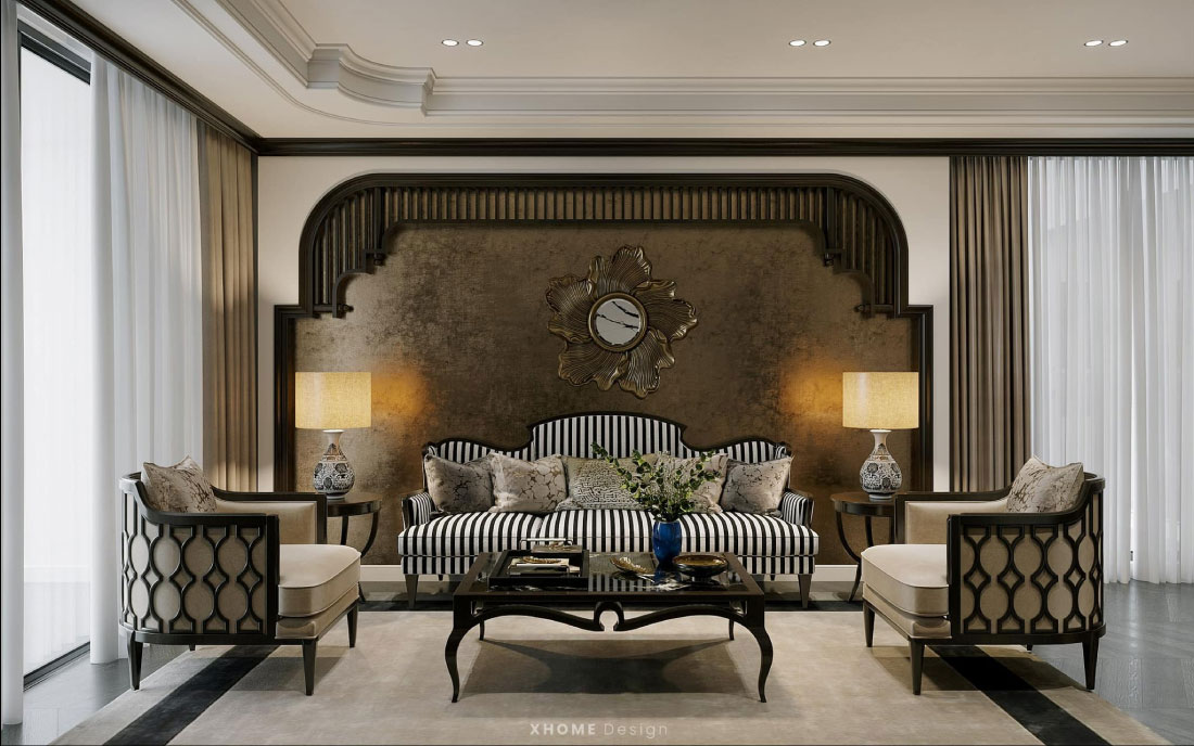 Căn hộ Diễn viên Bảo Thanh là một biệt thự hai tầng với phong cách nội thất Indochine sang trọng do XHOME thực hiện vào năm 2024. Với diện tích sử dụng lên tới 550m2, dự án hứa hẹn mang đến một không gian sống đậm chất Á Đông tinh tế, kết hợp hoàn hảo giữa vẻ đẹp truyền thống và tiện nghi hiện đại.