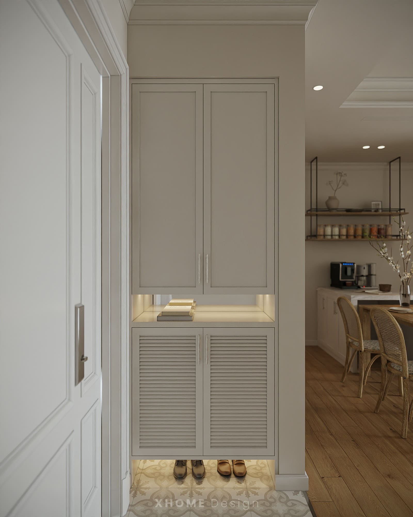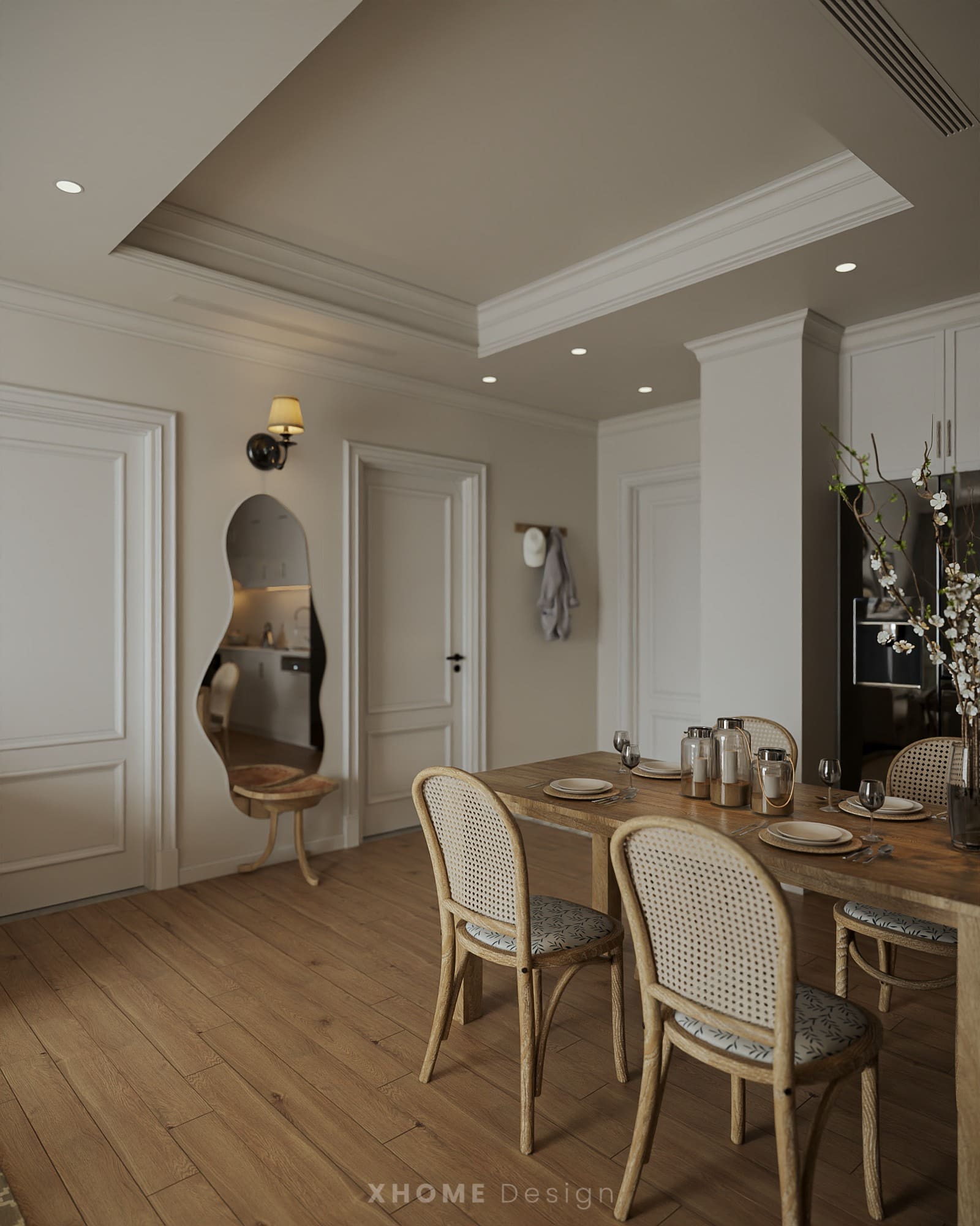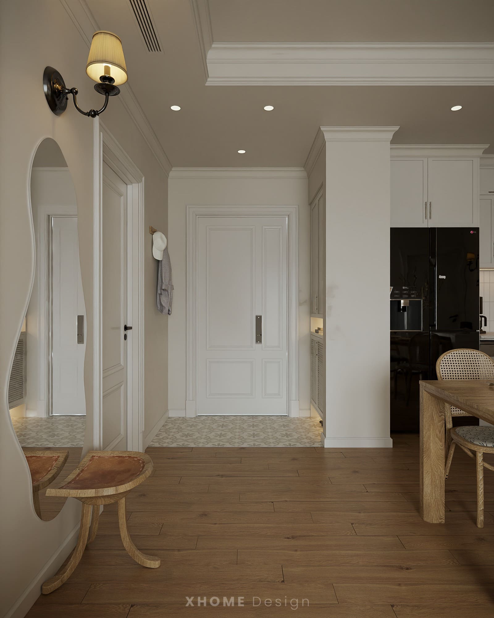 Căn hộ tại Hateco Laroma được XHOME thiết kế nội thất theo phong cách hơi hướng Tân cổ điển, nổi bật với gam màu trung tính nhẹ nhàng, đường nét mềm mại và vật liệu gỗ ấm áp. Mỗi không gian đều được chăm chút tỉ mỉ, mang lại sự thanh lịch, sang trọng nhưng vẫn gần gũi, tiện nghi cho gia chủ.