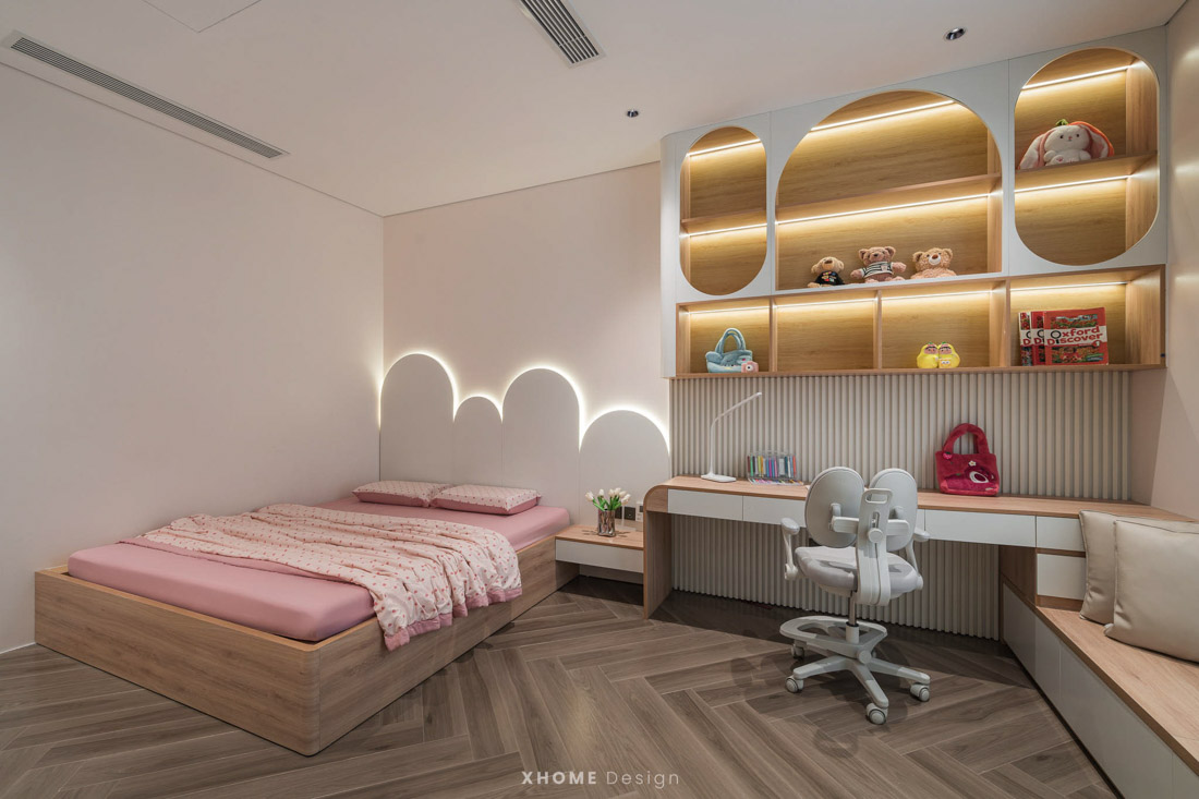 Kim Dong House là công trình nhà phố hiện đại được XHOME thiết kế và thi công nội thất trọn gói vào năm 2024, tọa lạc trên khu đất 200m² với diện tích sử dụng 120m² mỗi tầng. Ngôi nhà gây ấn tượng với hình khối kiến trúc tinh gọn, đường nét mạnh mẽ và khoảng xanh được bố trí khéo léo ở ban công, sân thượng, tạo nên sự hài hòa giữa công trình và thiên nhiên. Nội thất theo phong cách Modern Style với không gian mở, màu sắc trung tính, đường nét tối giản, kết hợp gói vật tư chất lượng cao, mang đến một tổ ấm vừa sang trọng vừa tiện nghi, phản ánh gu thẩm mỹ tinh tế của gia chủ.