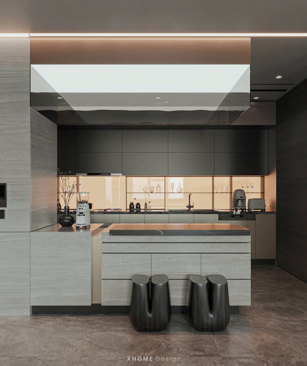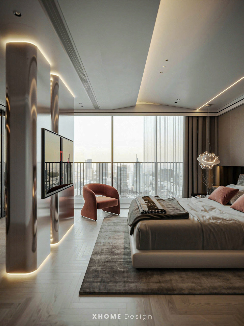 Tại đây, XHOME đã thiết kế nội thất căn hộ SPLENDORA theo phong cách hiện đại, đề cao sự tinh giản nhưng sang trọng, tập trung vào công năng và tính thẩm mỹ. Các chất liệu da, vải nỉ, đá tự nhiên, kim loại mạ cùng bảng màu trung tính xám – be – nâu được kết hợp hài hòa, tạo nên không gian ấm áp, tiện nghi và đẳng cấp, khẳng định chuẩn mực sống của gia chủ.