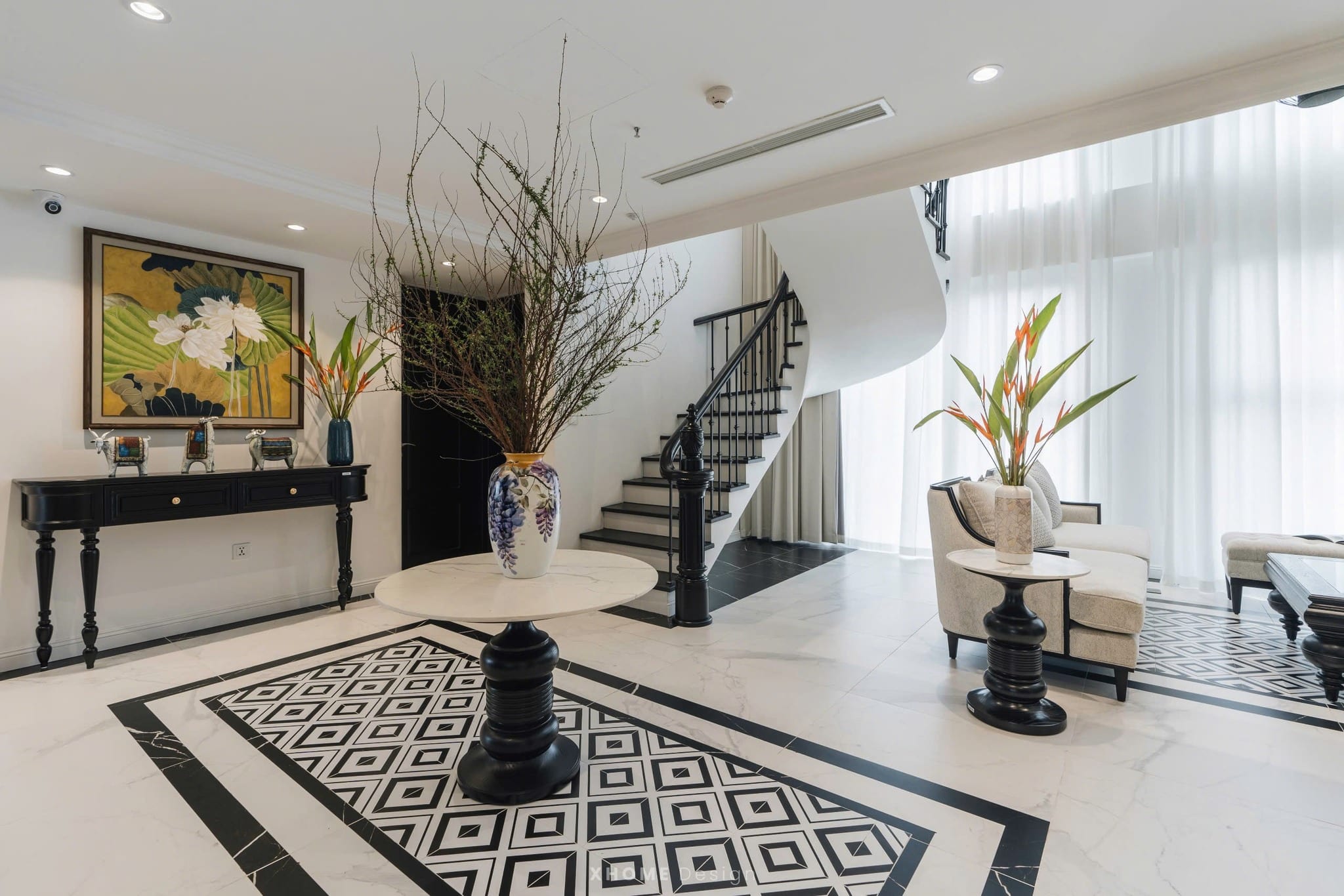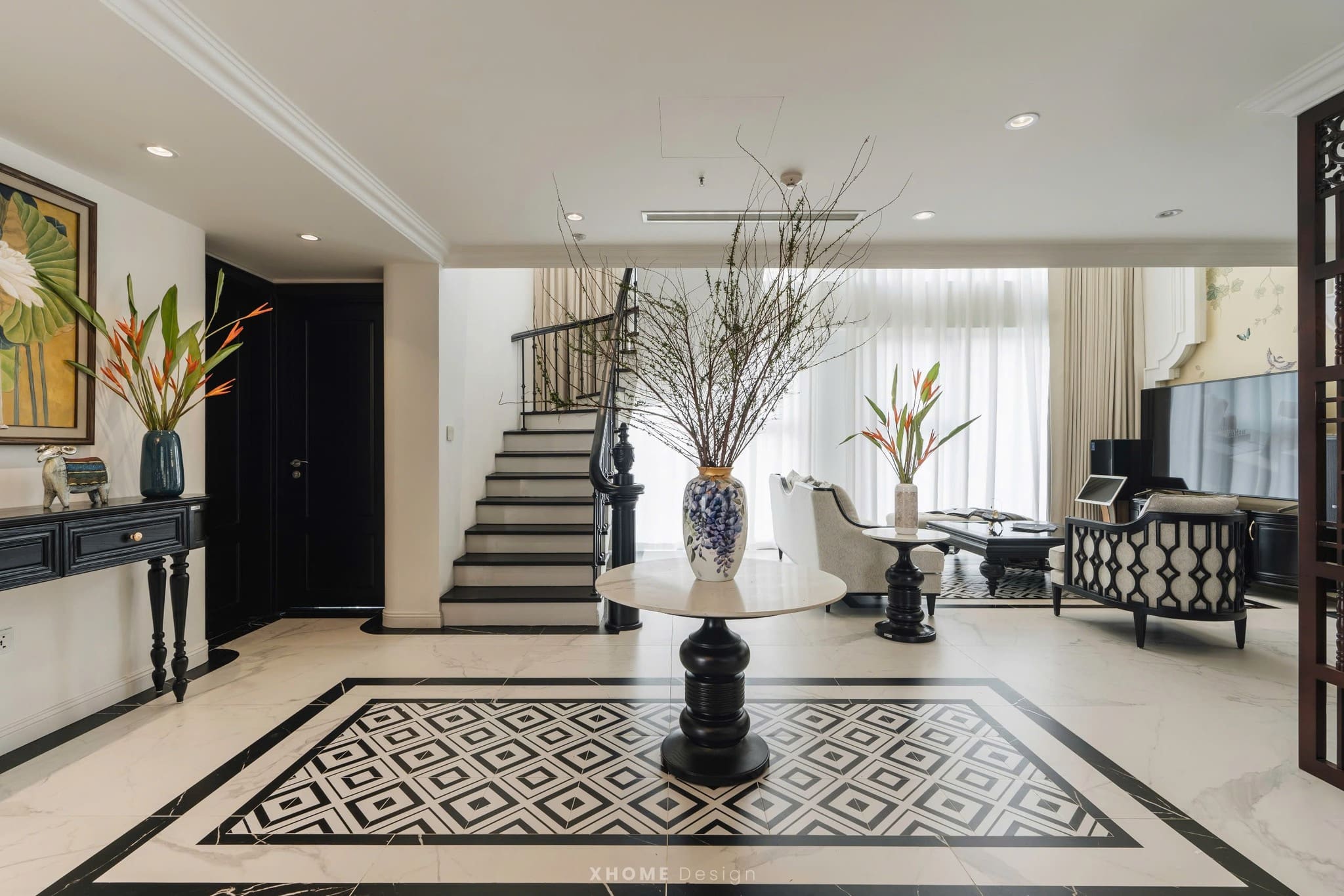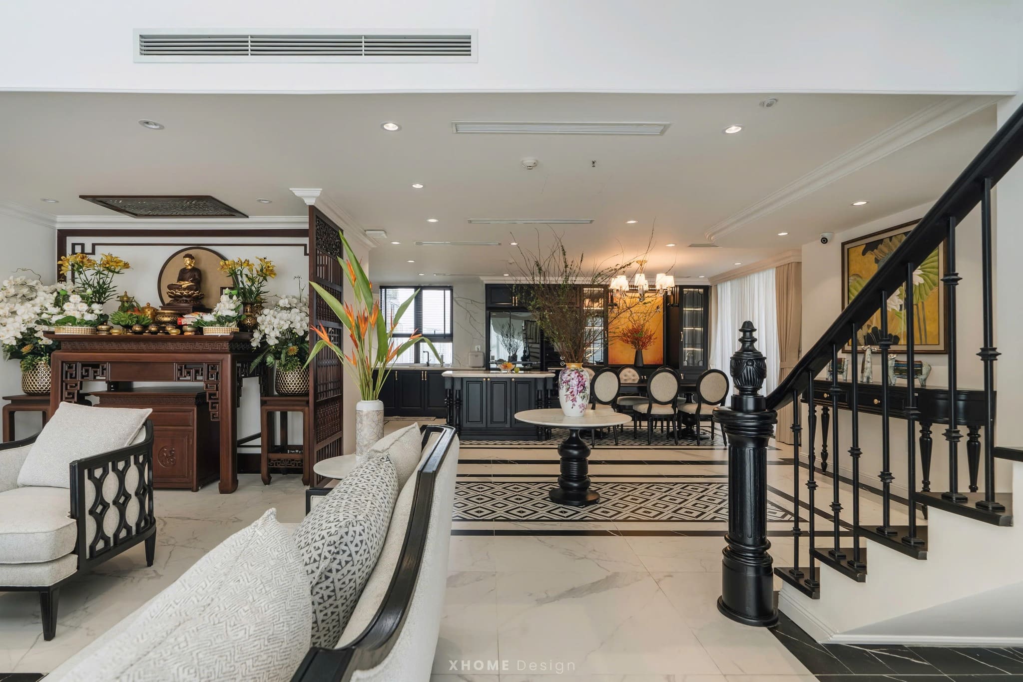 Dự án thi công nội thất căn hộ Duplex Swanlake Onsen Ecopark 180m2 được XHOME thi công nội thất năm 2024 theo phong cách Indochine. Không gian mang đậm hơi thở Á Đông kết hợp nét hiện đại tinh tế, tạo nên một nơi ở vừa sang trọng vừa gần gũi, thể hiện trọn vẹn giá trị thẩm mỹ và tiện nghi cho gia chủ.