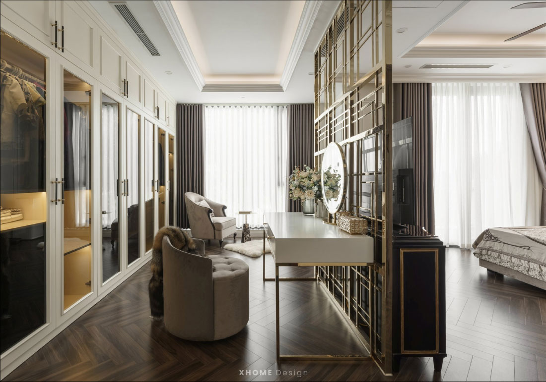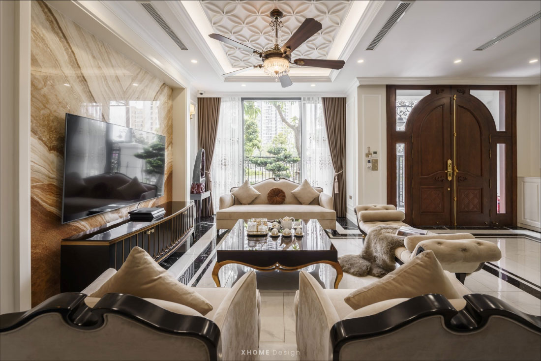 Biệt thự liền kề Vinhome Ocean Park căn NT19-15 thuộc phân khu compound Ngọc Trai (Vinhomes Gia Lâm) là dự án được thiết kế thi công nội thất trọn gói bởi XHOME. Tổng diện tích sàn hơn 380m2 với quy mô 3 tầng 1 tum, được XHOME thiết kế theo phong cách tân cổ điển, cao cấp.
