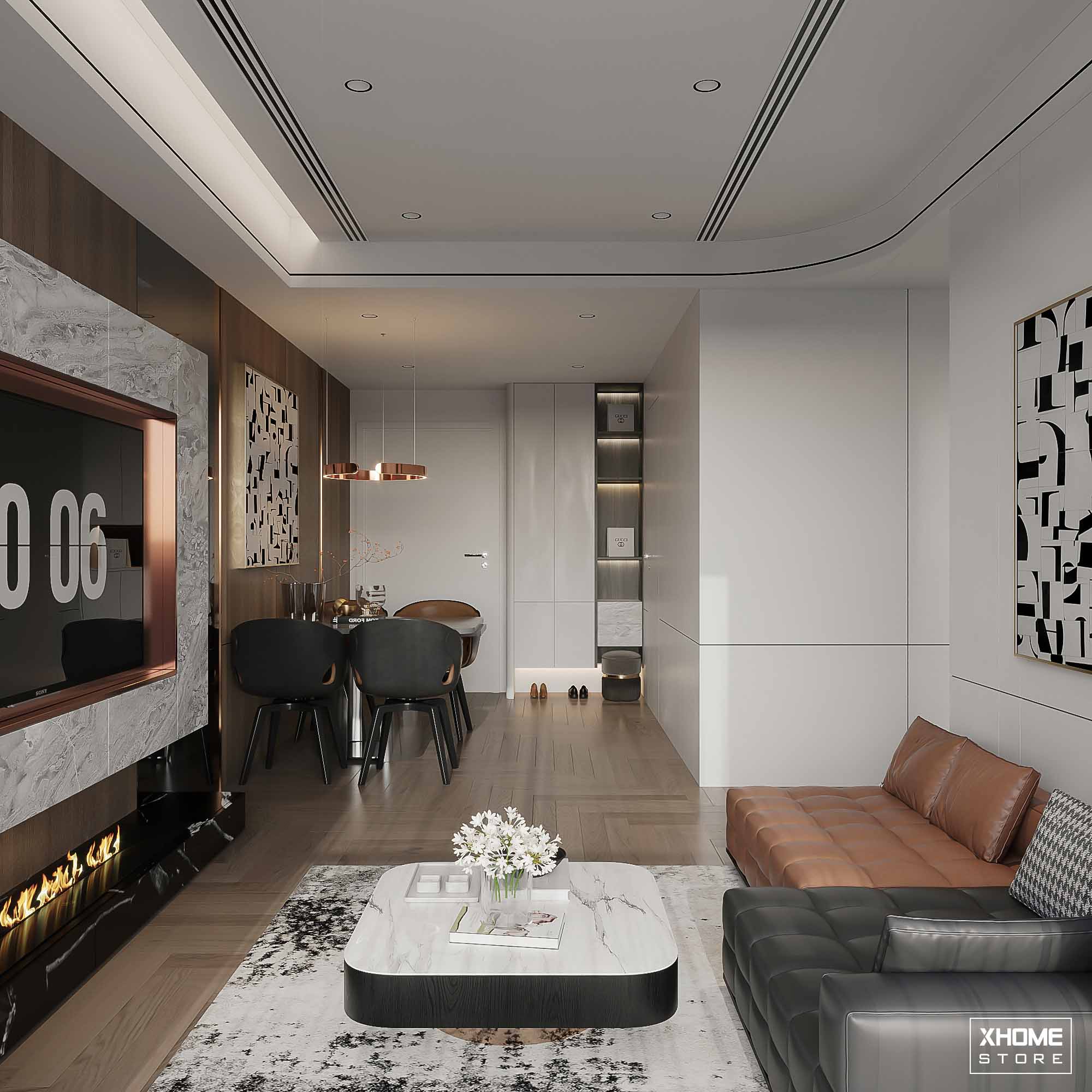 Thiết kế nội thất căn hộ 2PN Vinhomes Grand Park 70m² tại TP Thủ Đức được XHOME thiết kế theo phong cách Hiện đại, tối ưu không gian cho phòng khách, bếp – ăn, 2 phòng ngủ và 2 WC, mang đến sự tiện nghi và thẩm mỹ tinh tế cho gia chủ.