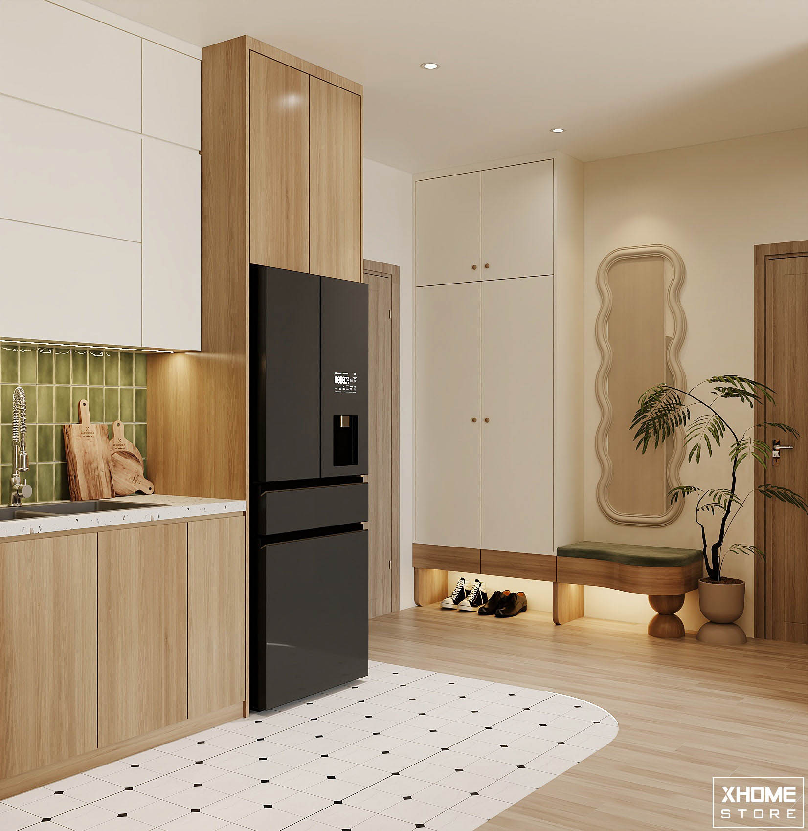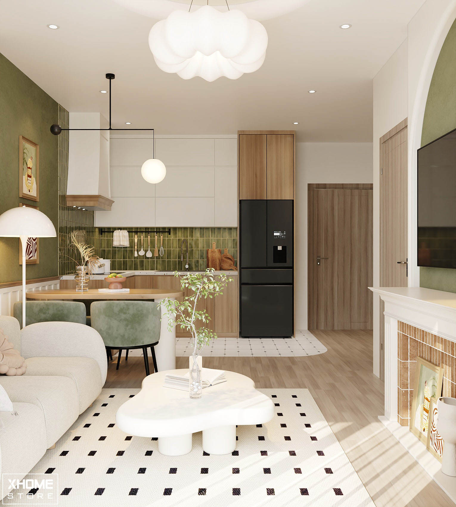 Canopy Vinhomes Smart City – Căn hộ 1 phòng ngủ, 42m² tại Nam Từ Liêm, Hà Nội được XHOME thiết kế nội thất theo phong cách Scandinavian. Không gian tối giản, sáng thoáng với bố trí liên thông phòng khách – bếp – ăn, cùng phòng ngủ và WC, mang lại cảm giác ấm áp và tiện nghi.