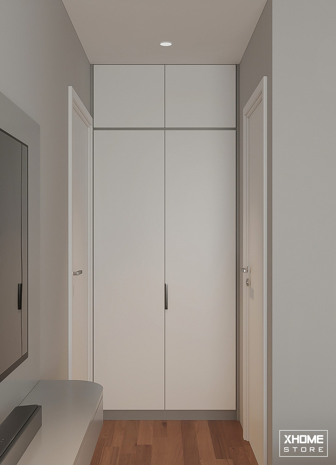 Thiết kế nội thất căn hộ 2PN Rose Town 95m² tại Hà Nội do XHOME thiết kế nội thất theo phong cách Hiện đại, tối ưu công năng với phòng khách – bếp – ăn liên thông, 2 phòng ngủ, phòng thay đồ, 2 WC và logia, mang đến không gian sống sang trọng và tiện nghi cho gia chủ.