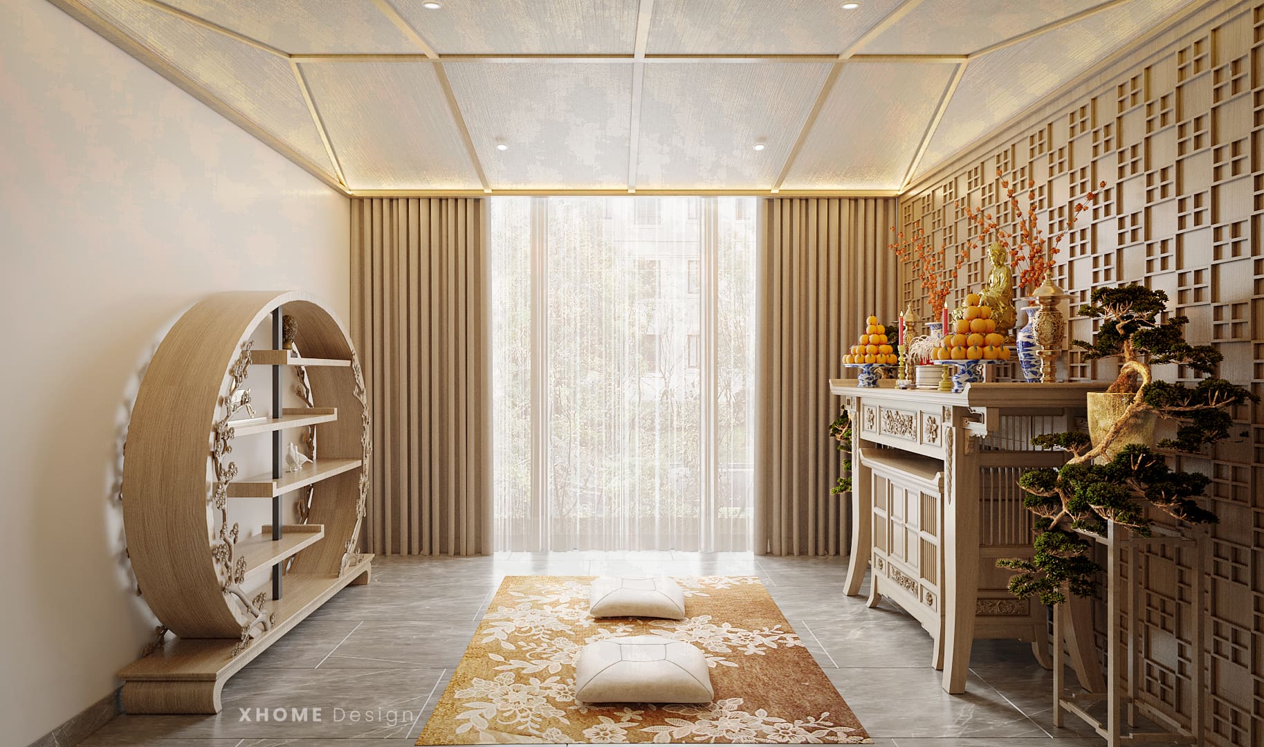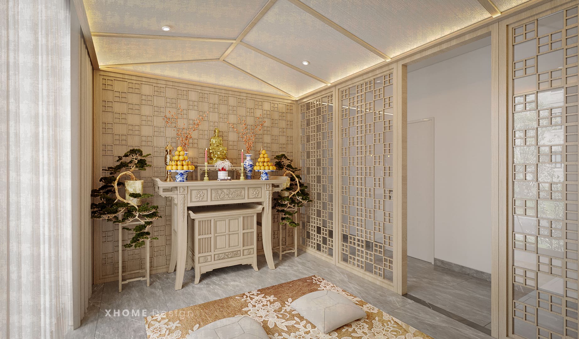 Các không gian chức năng đặc biệt như phòng golf, phòng xông hơi trong nhà được thiết kế với yêu cầu kỹ thuật riêng, đảm bảo diện tích sử dụng, khoảng lùi và hệ thống thiết bị phù hợp. Khu vực phòng ngủ được tổ chức gọn gàng, chú trọng sự cân bằng giữa ánh sáng, vật liệu và màu sắc nhằm mang lại cảm giác thư giãn. Không gian thờ được bố trí trang trọng, tuân thủ yếu tố phong thủy và đảm bảo sự hài hòa với tổng thể kiến trúc hiện đại của biệt thự.