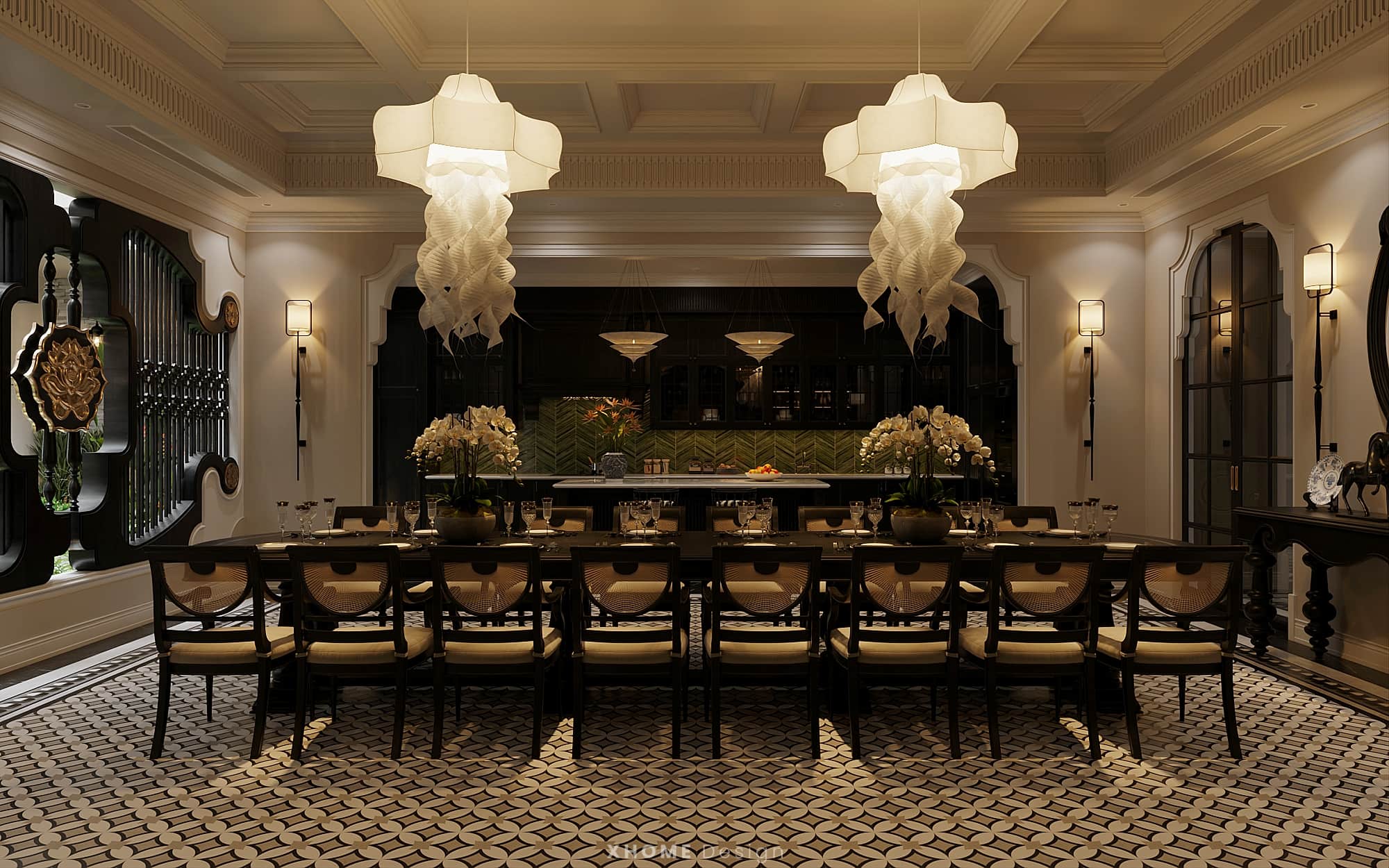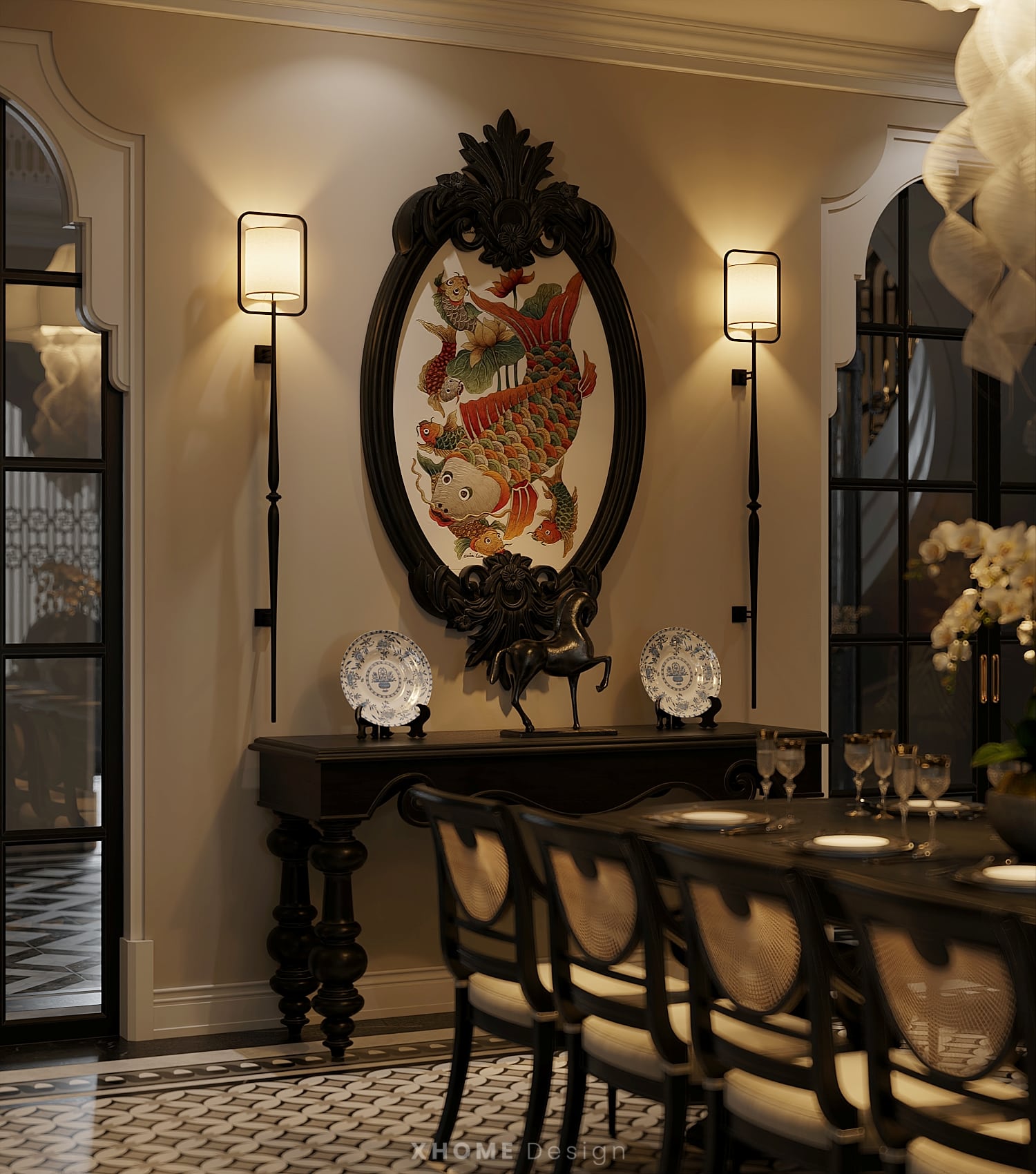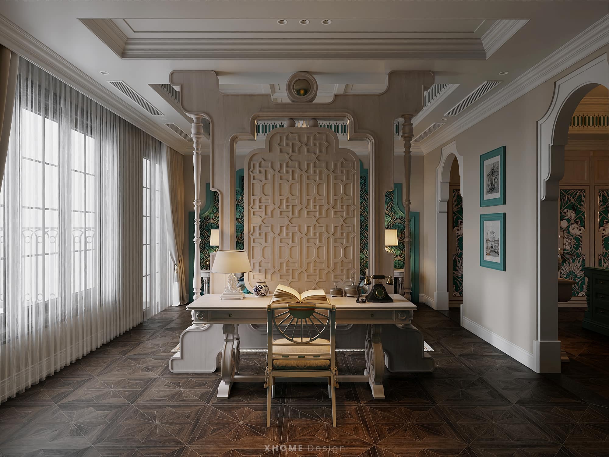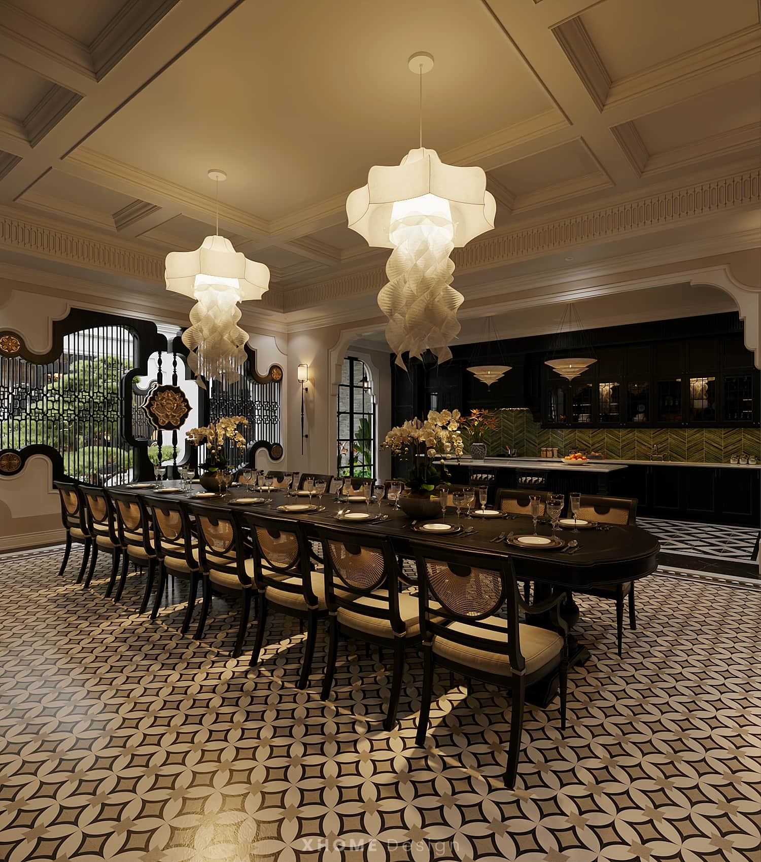 Việc thiết kế nội thất cho Thu Duc Villa đòi hỏi một sự am hiểu sâu sắc về tỉ lệ, chất liệu và màu sắc để có thể truyền tải đúng tinh thần “Indochine quyến rũ”. Đội ngũ kiến trúc sư của XHOME đã khéo léo sử dụng các ngôn ngữ thiết kế đặc trưng để tạo nên sự đồng nhất nhưng vẫn đầy bất ngờ qua từng khu vực chức năng.