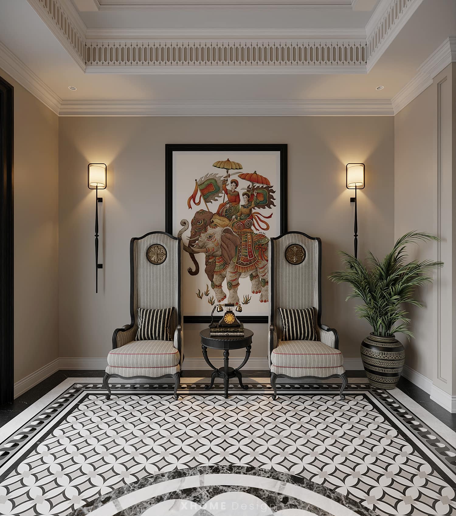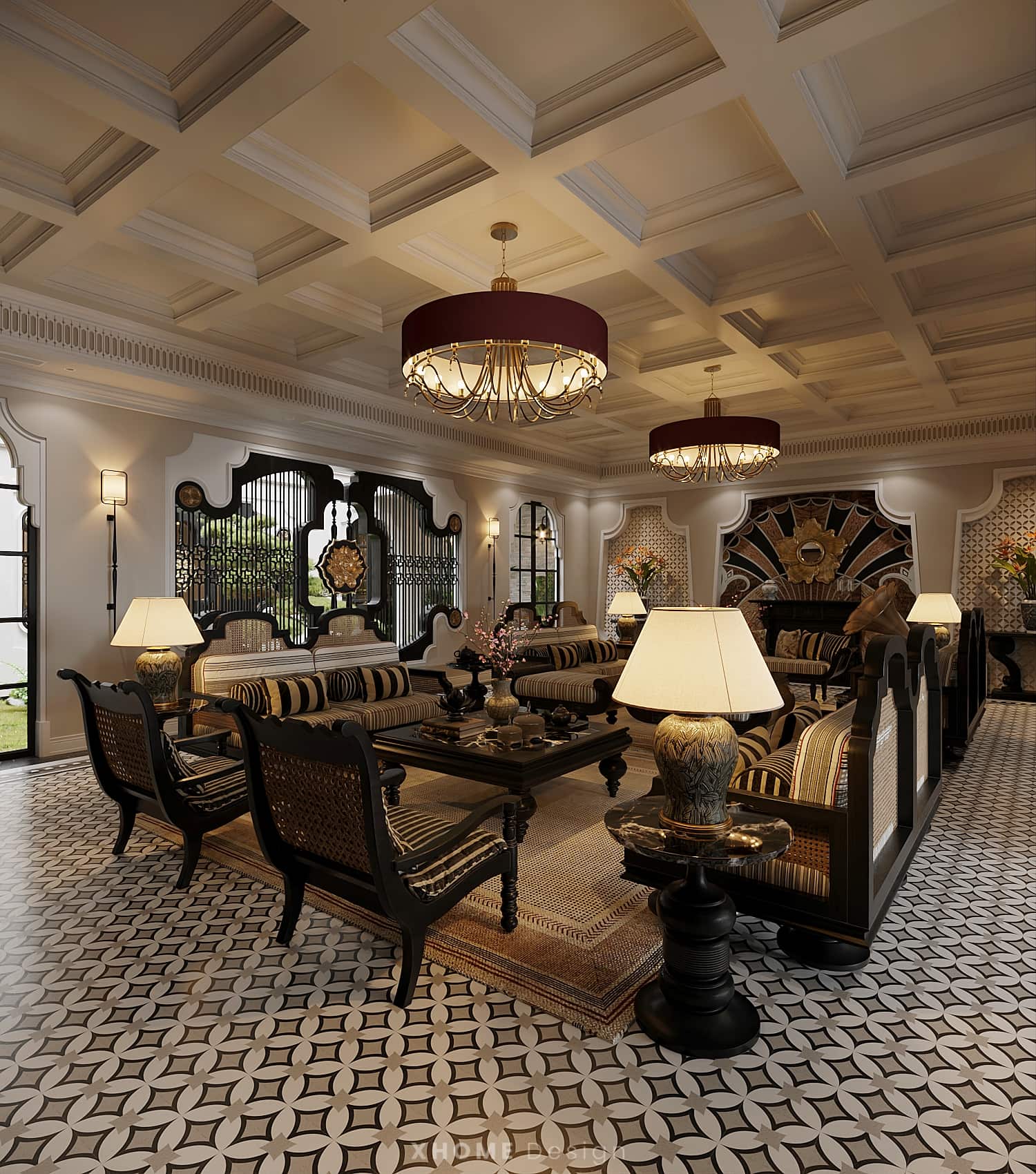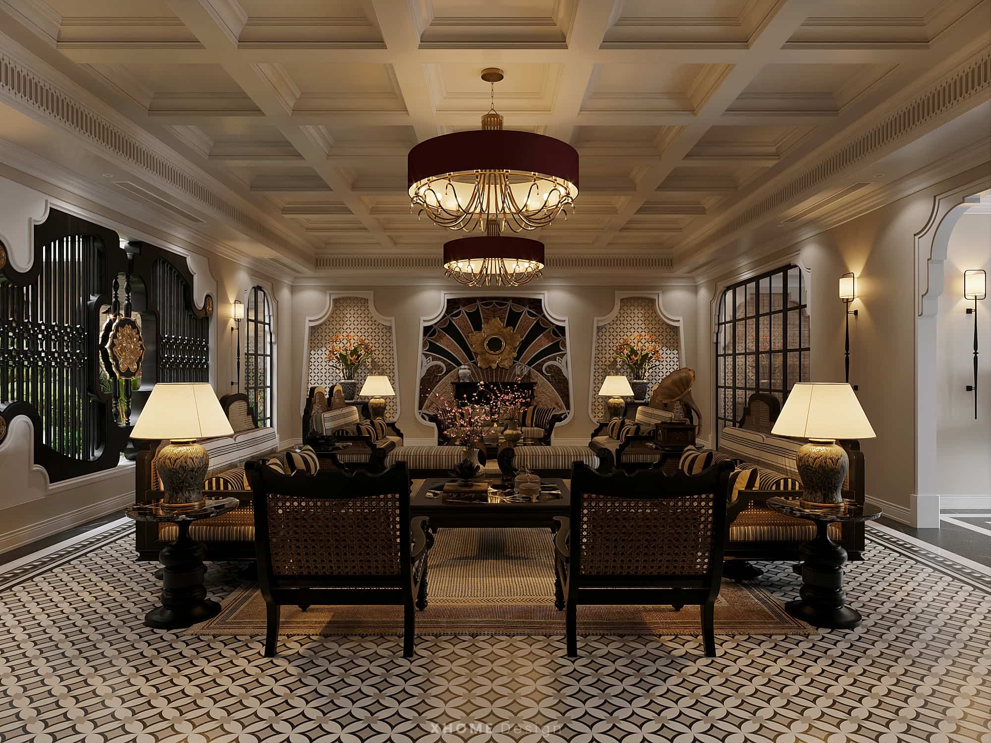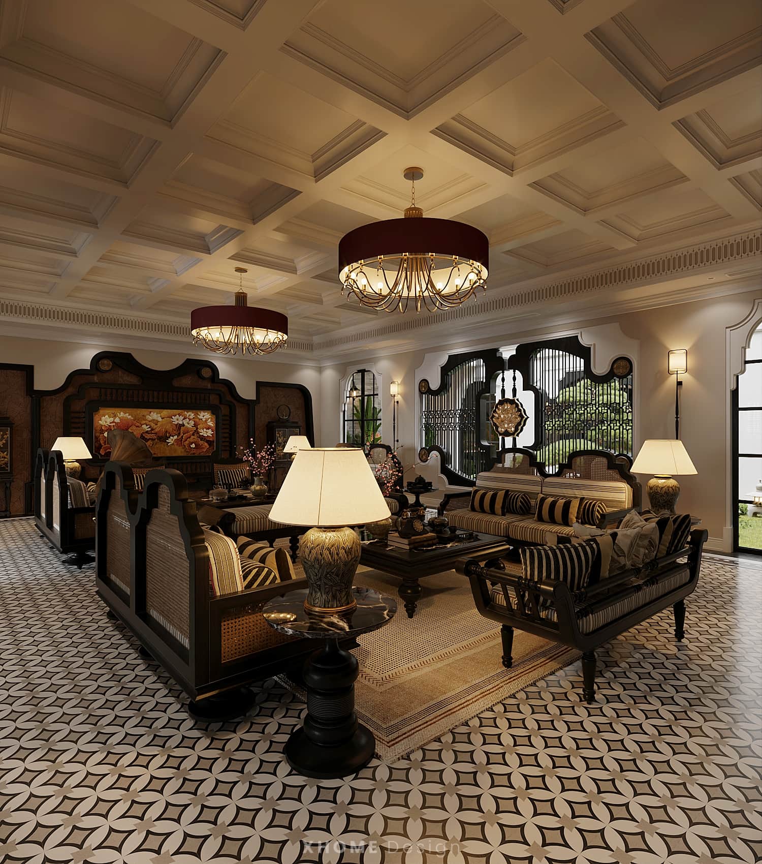 Dự án Thiết kế nội thất biệt thự Indochine tại Thủ Đức là bản giao hưởng giữa nét hoài cổ Đông Dương và sự sang trọng hiện đại. Không gian sống nổi bật với sàn gạch bông đặc trưng, nội thất gỗ chạm khắc tinh xảo phối cùng tông màu ấm cúng. Từng chi tiết từ đèn chùm nghệ thuật đến vách ngăn di sản đều được đo ni đóng giày, kiến tạo nên một dinh thự đẳng cấp, đậm chất bản sắc riêng tại trung tâm Thủ Đức.
