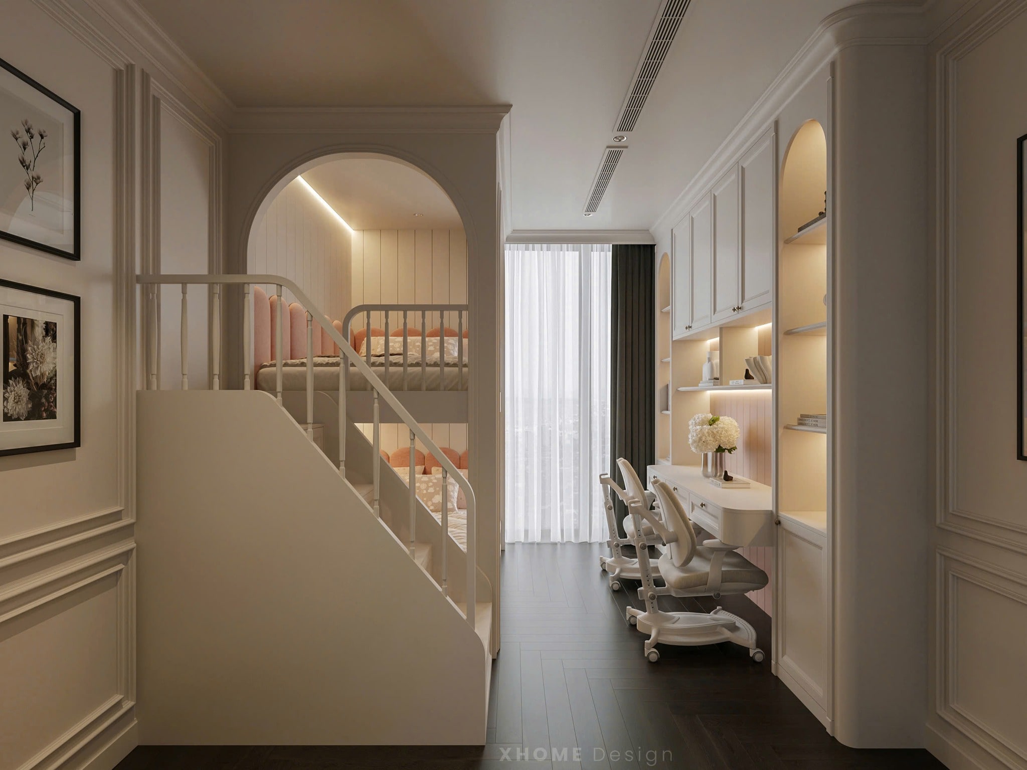 Thiết kế nội thất chung cư tân cổ điển Han Jardin Apartment 140m² – do XHOME thực hiện năm 2025 tại Bắc Từ Liêm, Hà Nội.