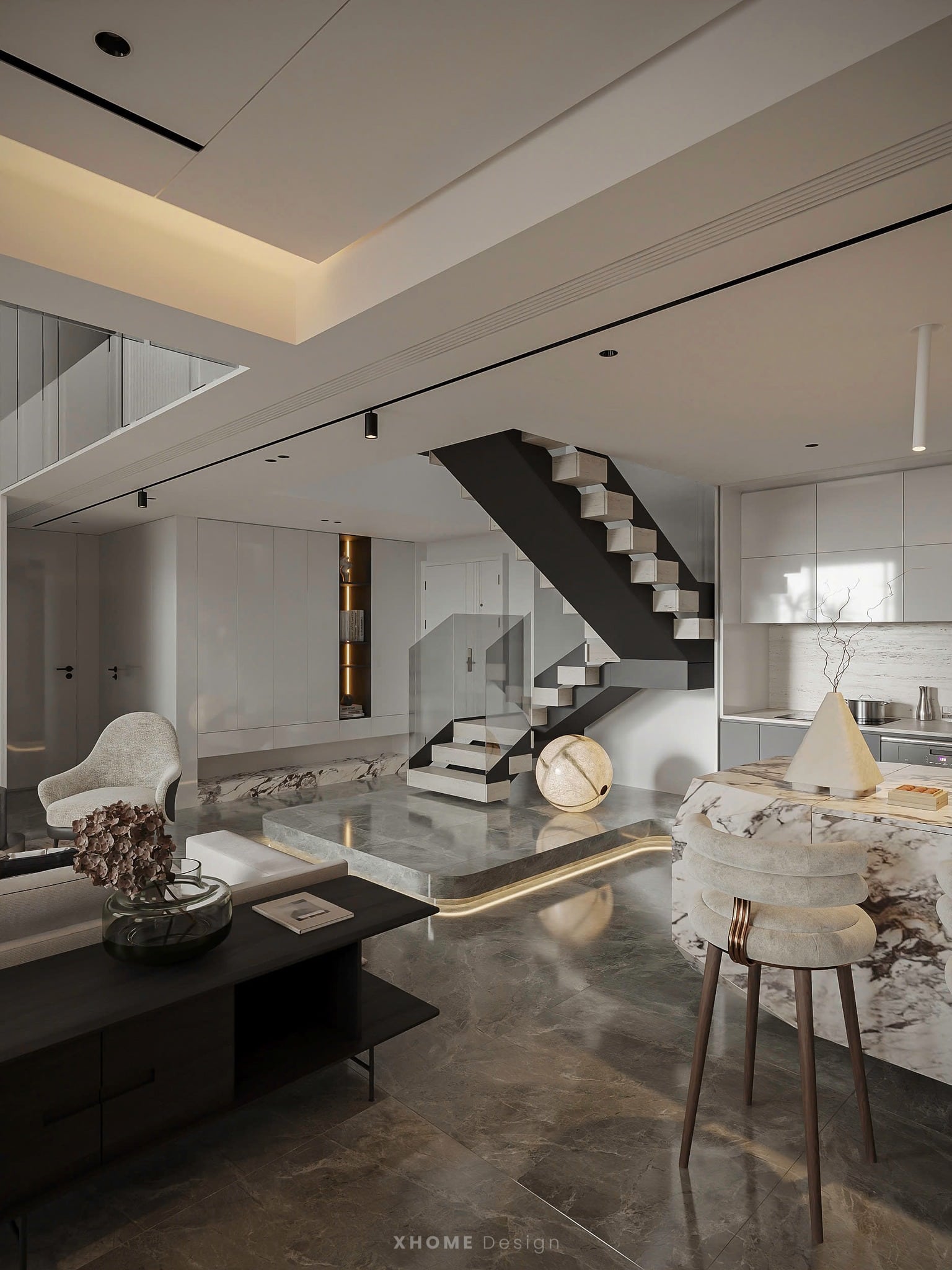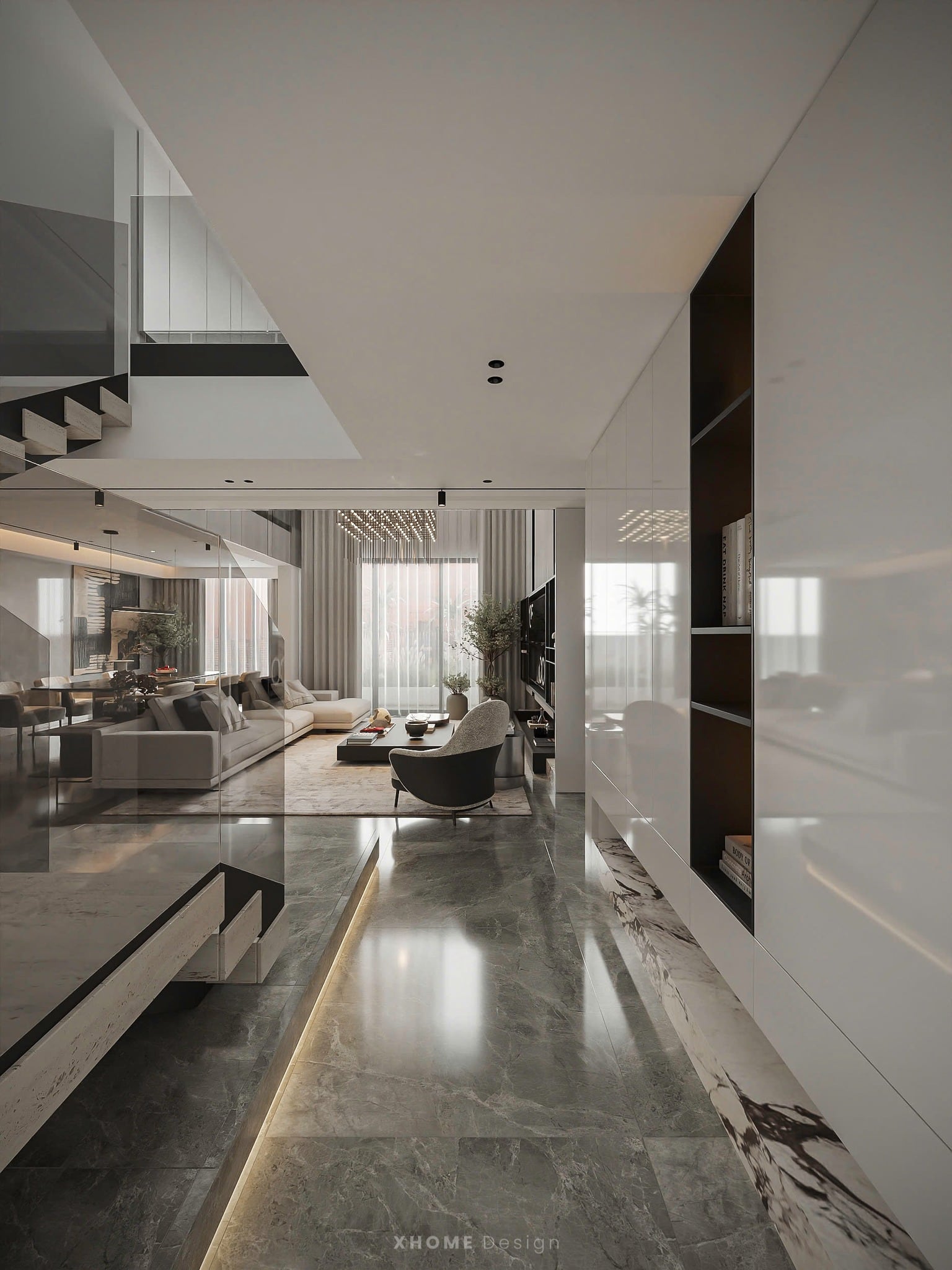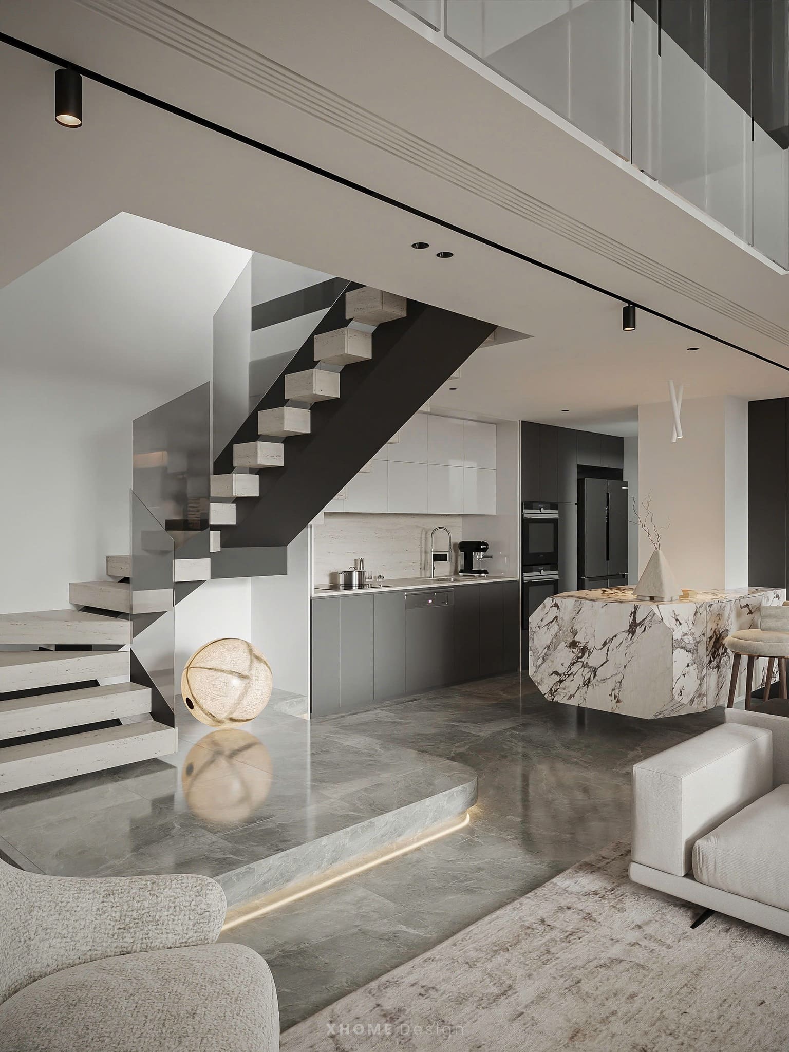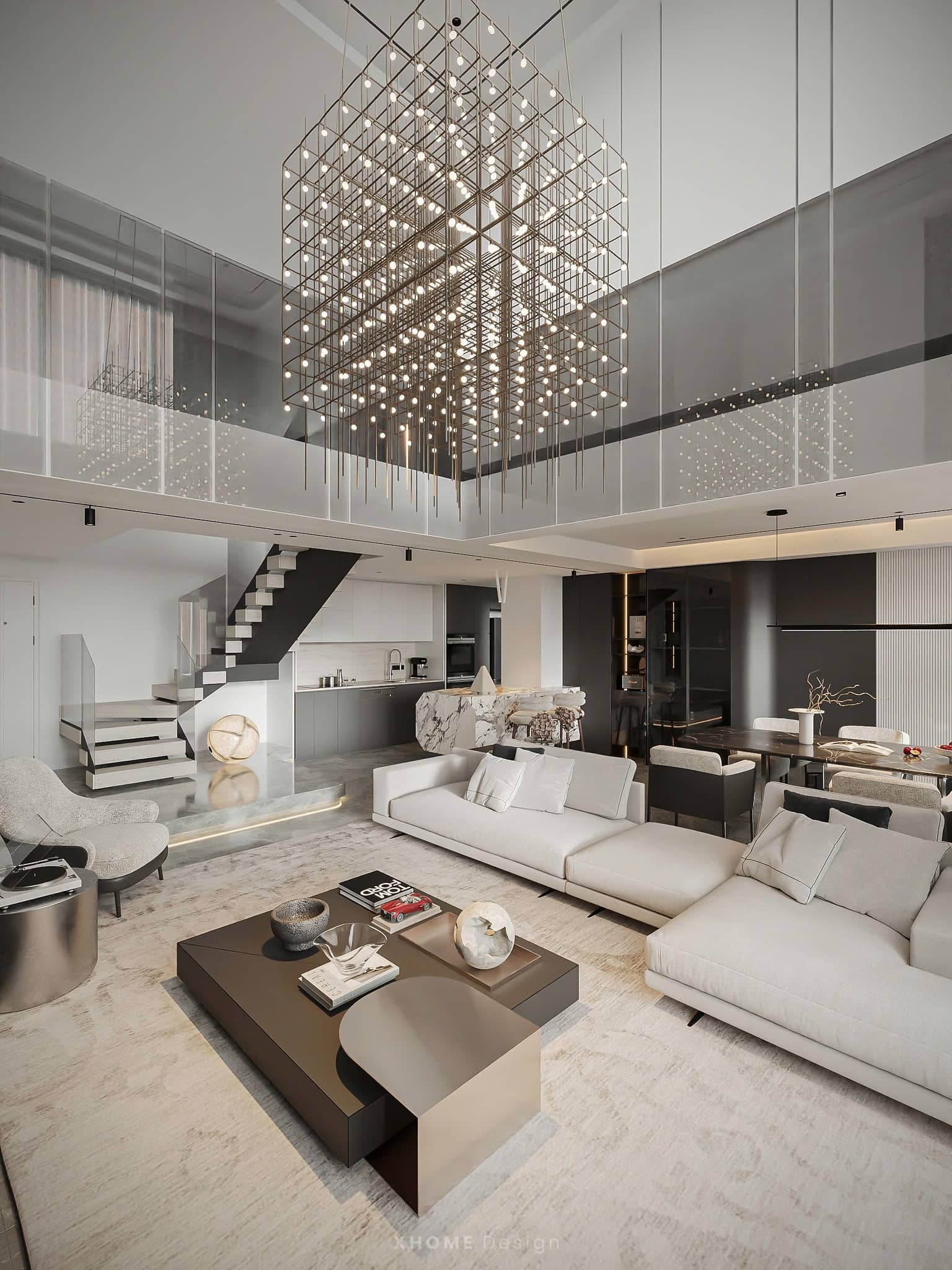 Dự án thiết kế nội thất duplex phong cách hiện đại Wisteria Duplex được XHOME triển khai tại Hoài Đức, Hà Nội. Với không gian thông tầng khoáng đạt, XHOME đã khéo léo kết hợp các đường nét tinh tế cùng vật liệu cao cấp, tạo nên vẻ đẹp sang trọng và tiện nghi bậc nhất. Giải pháp thiết kế nội thất duplex tại đây không chỉ tối ưu hóa ánh sáng tự nhiên mà còn khẳng định gu thẩm mỹ thời thượng của gia chủ.
