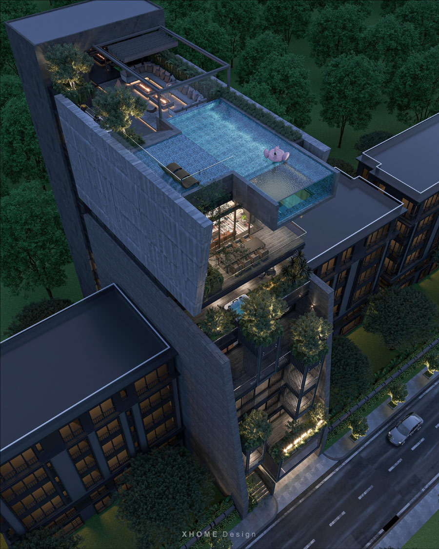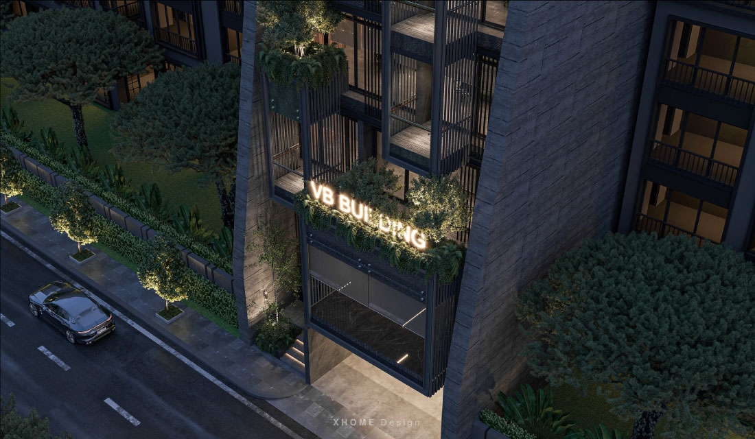 VB Building là tòa nhà 9 tầng mang phong cách hiện đại cao cấp, mỗi tầng có diện tích khoảng 400m². Công trình gây ấn tượng bởi thiết kế nhiều mảng xanh độc đáo, hồ bơi kính trên mái và không gian sống sang trọng, tinh tế.