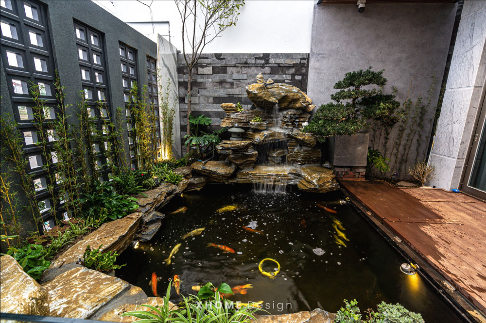 Không gian sống được bố trí tinh tế với phòng thờ trang nghiêm đặt liền kề phòng khách, ngăn cách bằng vách TV hiện đại để vừa đảm bảo tính riêng tư vừa hài hòa thẩm mỹ tổng thể. Khu vực sân trong nổi bật với hồ cá Koi kết hợp tiểu cảnh suối đá, mang lại sinh khí và yếu tố phong thủy giúp cân bằng năng lượng cho toàn bộ ngôi nhà. Mỗi chi tiết được chăm chút tỉ mỉ, thể hiện sự đầu tư vào không gian sống đậm chất cá nhân và gu thẩm mỹ riêng biệt của gia chủ.